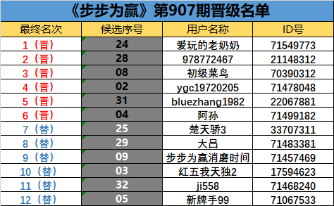 根据2025年10月9日中国福利彩票“双色球”玩法第25116奖结果,《步步为赢》第907期晋级名单已经产生。