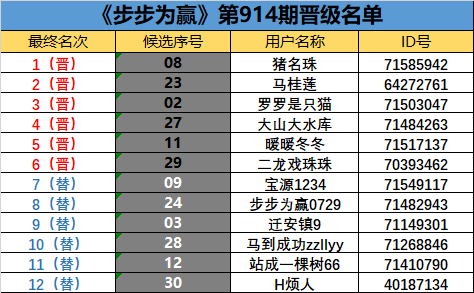 《步步为赢》第914期晋级名单公布