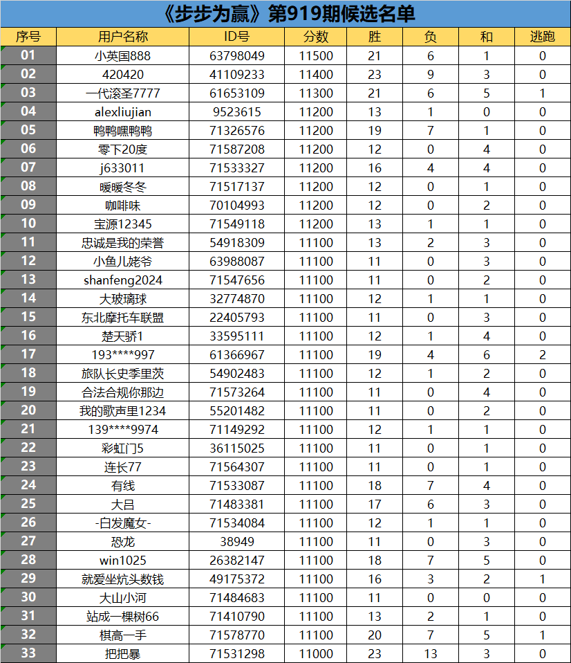 经过一周的激烈角逐,《步步为赢》第919期网络海选的33名候选选手已经揭晓。