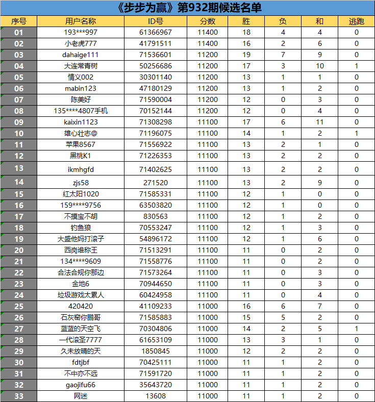 《步步为赢》第932期候选名单公布
