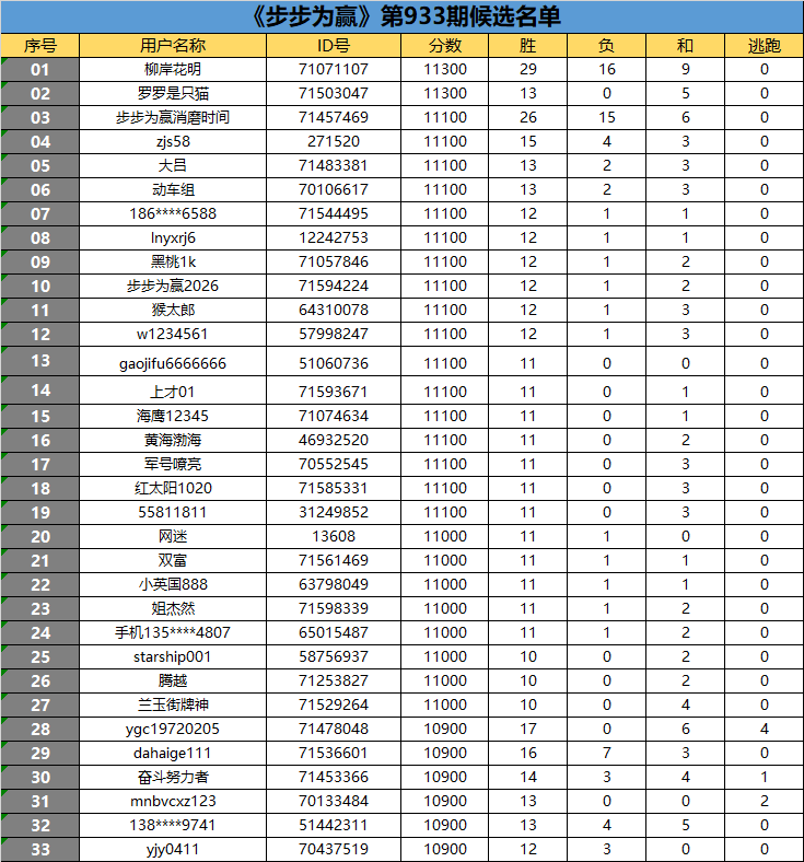 《步步为赢》第933期候选名单公布